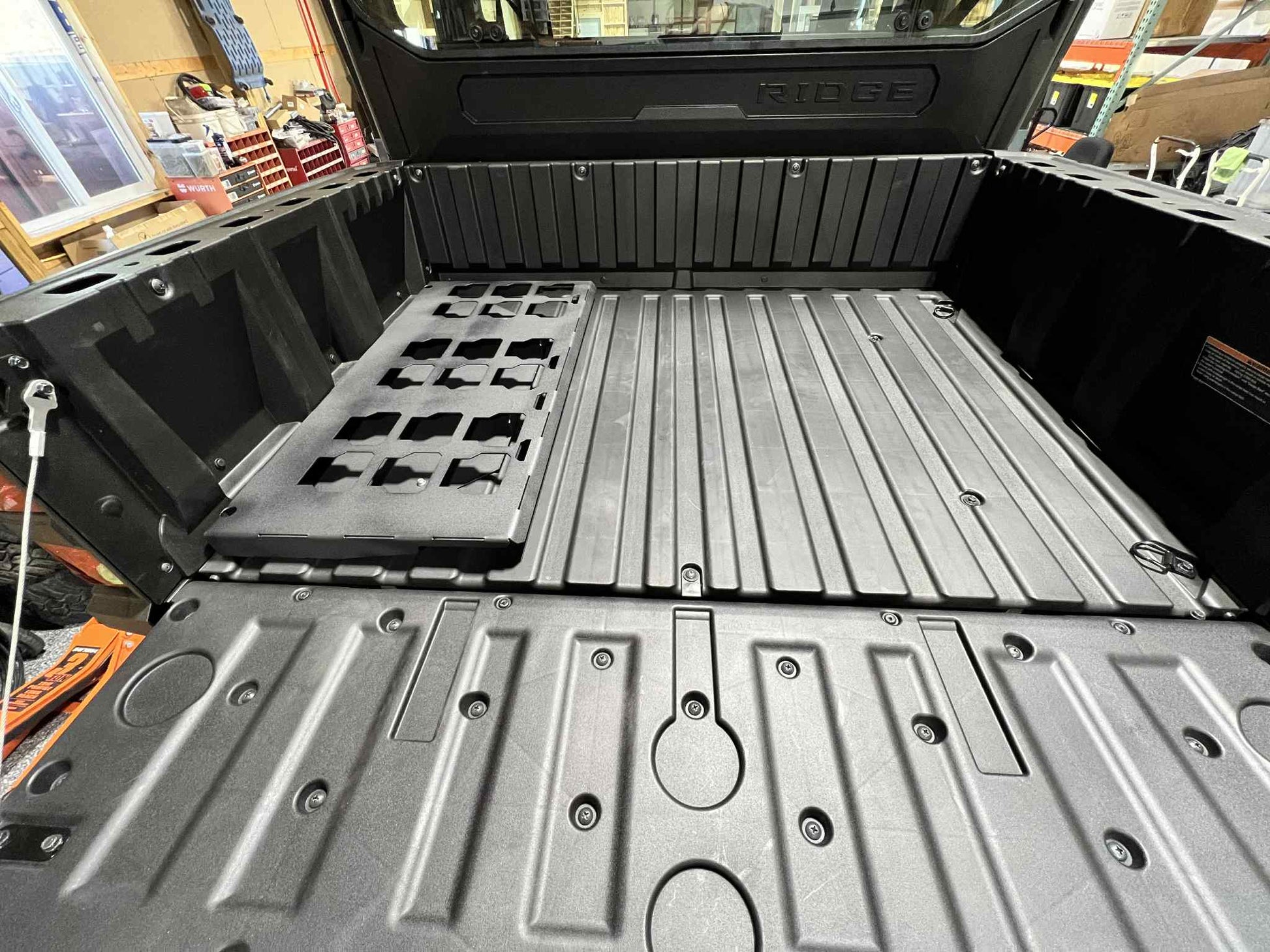 Our Milwaukee Packout Mount is a great storage solution for on the go. These are cut out of 14 gauge steel and are powder coated black to sustain any weather conditions. Metal reinforced mounting holes allow the mounting plate to be securely fastened to most surfaces. Our mounts come welded/assembled and are ready to be bolted onto your machine. We include stainless steel mounting hardware to make install super easy!